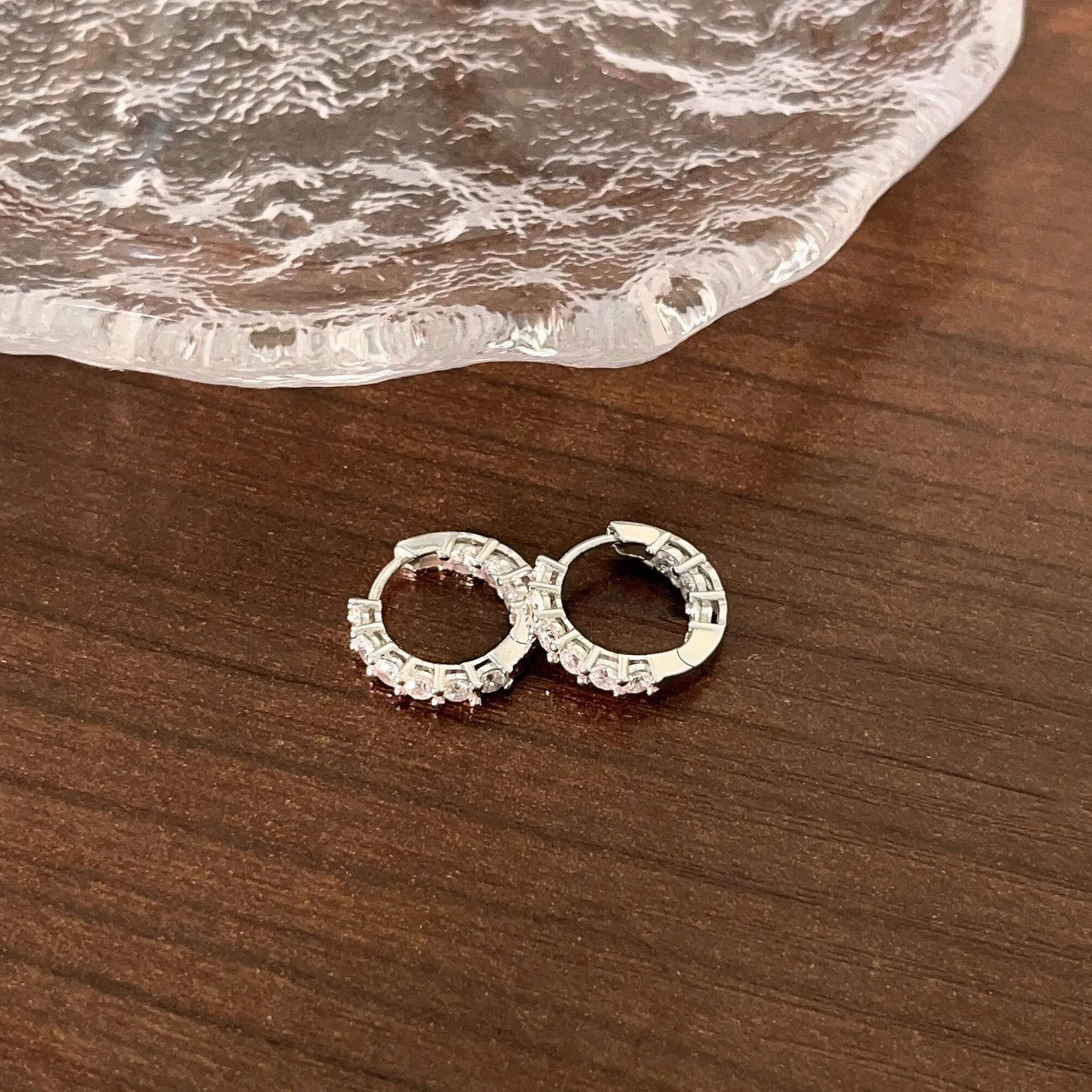 Eleganta små huggie-örhängen med gnistrande pavéinfattade stenar, designade för att sitta bekvämt hela dagen – ett tidlöst och lättburet smycke som passar perfekt för både vardag och lager-på-lager-styling.